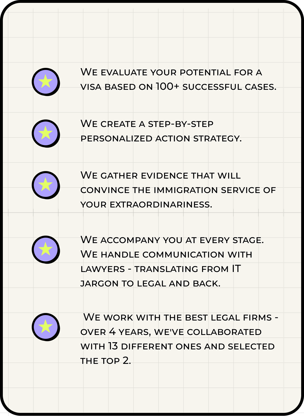 Our partner, a law firm, will conduct an intensive review of your background to assess eligibility and requirements. In some cases, an applicant may need to provide more evidence or additional experience before we determine that the case is strong enough. Some cases can be ready for filing